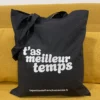 Ce tote-bag noir porte l’expression emblématique franc-comtoise « T’as meilleur temps », qui apportera une touche d’authenticité à vos balades. Les couleurs et le positionnement de la typographie peuvent varier selon le façonnage car ils sont marqués entièrement à la main. Tote-bag fait sur demande en Franche-Comté. Les délais de création sont de 5 à 8 jours ouvrés (parfois moins !). Le Tote-bag est lavable. Il est conseillé de le laver à la main et le sécher à l’envers pour éviter d’abimer le motif. Repassage possible, application du fer uniquement sur l’envers. « T’as meilleur temps » : Expression franc-comtoise qui veut dire : « Tu ferais mieux de… »