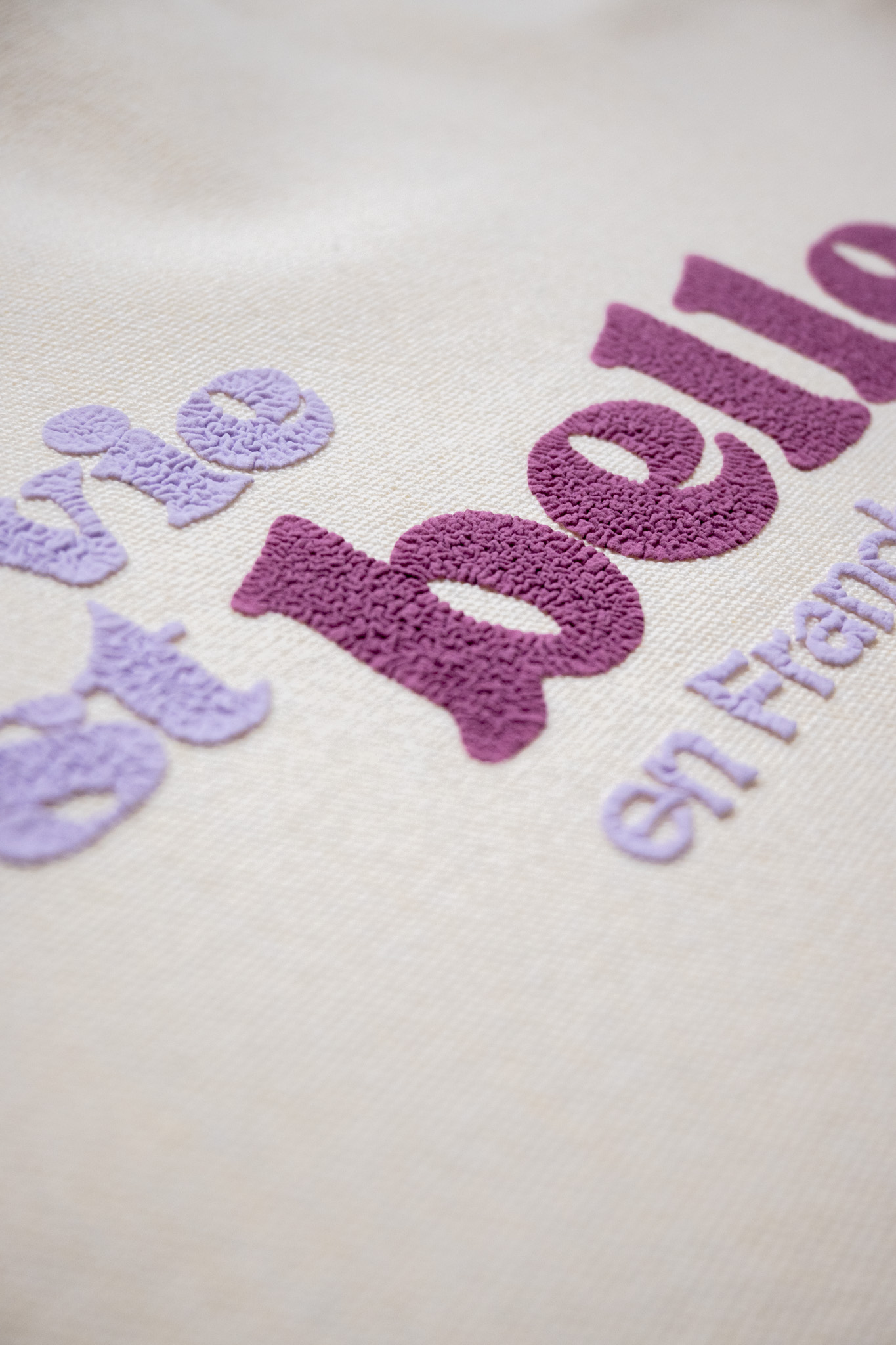 Tote-bag exclusif « La vie est belle en Franche-Comté » créé en Franche-Comté. Les délais de création sont de 5 à 8 jours ouvrés (parfois moins !). Les couleurs et le positionnement de la typographie peuvent varier selon le façonnage car ils sont marqués entièrement à la main. Le tote-bag est lavable. Il est conseillé de le laver à la main et le sécher à l’envers pour éviter d’abimer le motif. Repassage possible, application du fer uniquement sur l’envers.